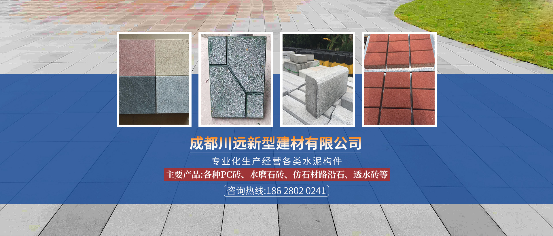成都川遠新型建材有限公司是一家專業(yè)化生產(chǎn)經(jīng)營透水磚、pc磚定制,仿石材路沿石、水磨石磚的企業(yè)。擁有了面積達1000多平方的生產(chǎn)基地,多套完整的大、中型生產(chǎn)設(shè)備和眾多專業(yè)生產(chǎn)技術(shù)人員。本廠生產(chǎn)的各種型號等...